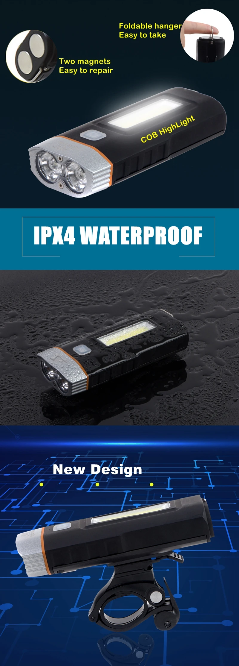3 в 1 Ліхтар велосипедний, велофара, повербанк/Велосипедний ліхтар + магніти Bicycle Lamp HJ-048